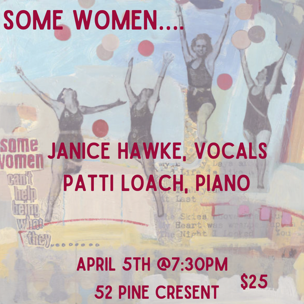 In February of 2023, singer Janice Hawke and pianist Patti Loach lovingly – and in some cases hilariously – reprised songs that were sung or written by Gilda, Madeline, Carol and a handful of other women who lived and worked in the worlds of Musical Theatre, contemporary cabaret, television, jazz, the Great American Songbook and Pop Music, in their show “Some Women”.